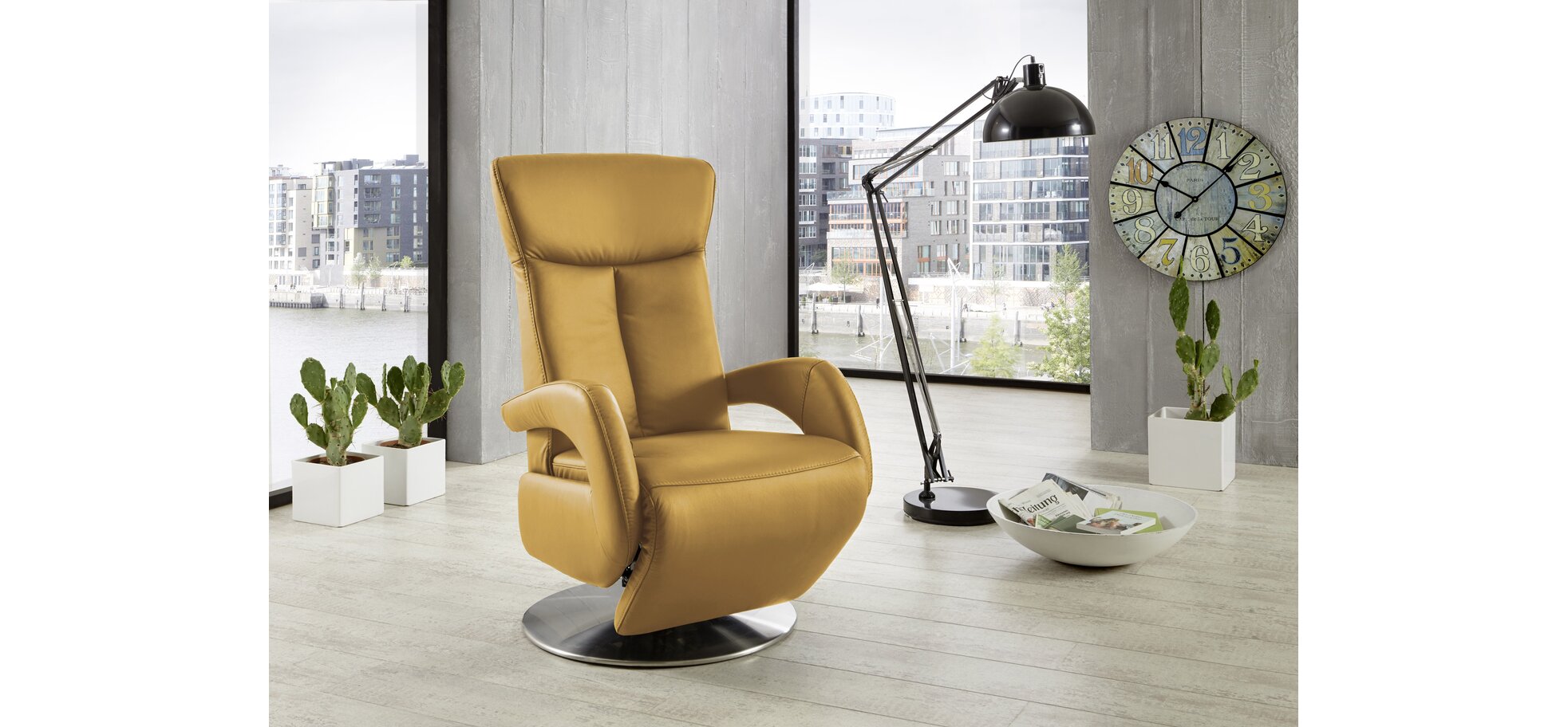 Abmessungen Konfektionsgröße: M (Körpergröße bis 180 cm) Breite: 67 cm Tiefe: 80 cm Höhe: 108 cm Belastbarkeit: 130 kg Sitzbreite: 51 cm Hauptfarbe/-material Farbe: Senfgelb Material: Leder Füße/Beine/Gestell Form Füße, Beine, Gestell: Drehteller Material Füße, Beine, Gestell: Edelstahl Polsterung Sitz: Schaumstoff Stahlwellenfedern Rückenlehne: Schaumstoff Details: Polyätherschaum Material Details Untergestell: Stahlrohrrahmen Merkmale Rücken bezogen Funktion Funktionen und Bedienung: Fußteil verstellbar (manuell) Rückenlehne verstellbar (manuell) Funktionen und Bedienung Details: Stufenlos verstellbar bis zur Liegeposition Hinweise Hinweise: Abweichungen in Farbe, Form, Abmessungen gegenüber den Abbildungen und Angaben vorbehalten Legere Verarbeitung/Polsterung – Faltenbildung gewollt Pflegehinweise: Bitte die Pflegehinweise der Hersteller beachten.