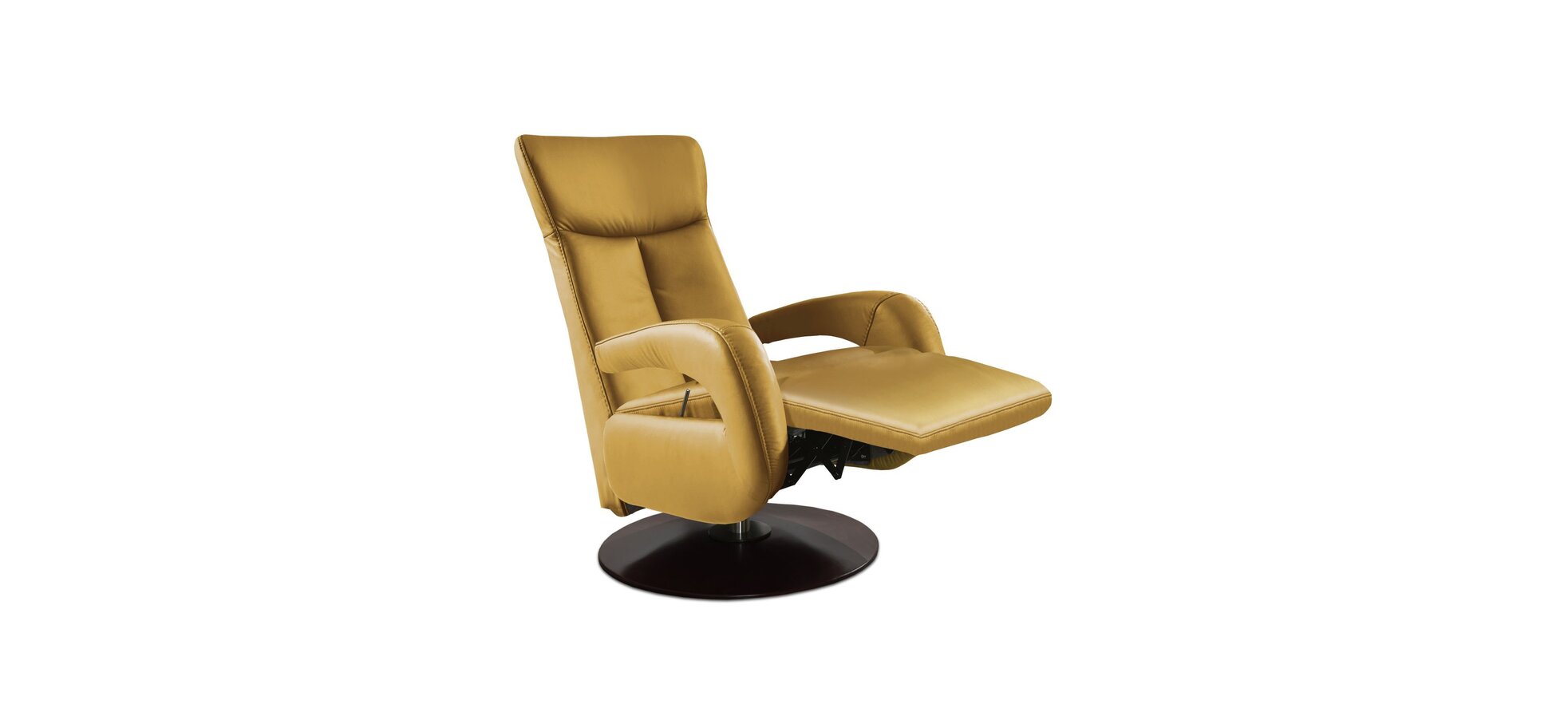 Bequemer Rückzugsort Beine hochlegen und entspannen – mit einem komfortablen Fernsehsessel kein Problem. ? Fußstütze und Rücken manuell verstellbar ? Drehteller ? schlanke Optik ? legere Ausführung Langweilig war gestern. Mit diesem Fernsehsessel bringen Sie nicht nur Farbe und frischen Wind in Ihre vier Wände. Der Fernsehsessel ist ein bequemer Rückzugsort für ruhige Abende – ein Liegeplatz nur für Sie allein. Schmeichelhaft empfängt Sie wunderbar, weicher Sitzkomfort. Angenehm zum Anlehnen und Entspannen die hohe, komfortabel gepolsterte Rückenlehne. Spontane Beweglichkeit verschafft Ihnen ein Drehteller in Edelstahl. Schmal und schlank in der Optik bietet der Fernsehsessel auch in kleinen Räumen hervorragende Entspannungsmomente. Mit wenigen Handgriffen erhalten Sie eine komfortable Fußablage. Durch Betätigung des innenliegenden Hebels und leichtem Körperdruck gegen das Rückenteil bewegt sich die Fußstütze nach oben. Parallel kann der Rücken durch leichten Körperdruck und entgegengesetzte Richtung des Hebels stufenlos bis zur entspannten Liegeposition verstellt werden.