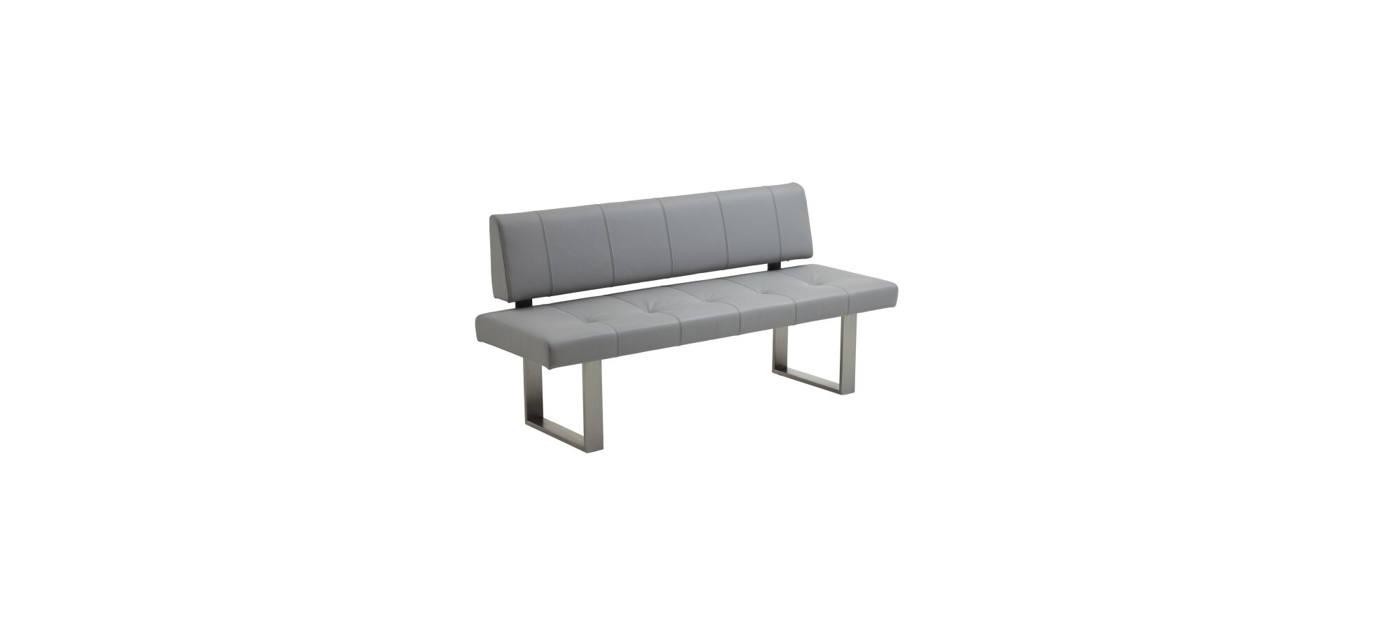 Abmessungen Breite: 180 cm Tiefe: 63 cm Höhe: 86 cm Sitzhöhe: 51 cm Hauptfarbe/-material Farbe: Hellgrau Material: Leder Füße/Beine/Gestell Form Füße, Beine, Gestell: Kufe Farbe Füße, Beine, Gestell: Edelstahloptik Material Füße, Beine, Gestell: Edelstahl Oberflächeverarbeitung Füße, Beine, Gestell: gebürstet Merkmale Banklehnen: mit Rückenlehne, ohne Armlehne Hinweise Hinweise: Abweichungen in Farbe, Form, Abmessungen gegenüber den Abbildungen und Angaben vorbehalten Legere Verarbeitung/Polsterung – Faltenbildung gewollt Pflegehinweise: Bitte die Pflegehinweise der Hersteller beachten.